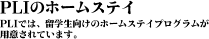 | ◎PLIのホームステイプログラム PLIではホームステイはあなたのカナダ留学を有意義なものにするために重要な役割を果たすと考え、生徒それぞれにふさわしい家庭を手配するためにホストファミリーを厳選しています。留学生がが教室の外でも英語とカナダ文化を学ぶことができるように、どの家庭でも日本からの留学生を家族の一員として迎え、できるだけ多くファミリーライフに参加するようサポートする体制となっているのです。 一つの家庭に二名以上の生徒が滞在する場合もありますが、同じ言語の生徒が一つの家庭に滞在することはありません。