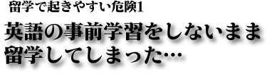 せっかく時間とお金を費やして留学するのだから、英語力をしっかりと上達させたいと考えるのが普通です。 期待したほど英語力が伸びなかった、勉強についていけなかった、やりたいことが上手く出来なかったという感想を残して留学を終えられる方の多くに、留学に向けての英語の準備不足があります。