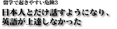 | 学校の授業以外に英語を使うことが短期間での留学では特に重要になってきます。 しかしながら、日本人同士で固まってしまい、楽であるからという理由で日本語ばかりを喋ったり、日本語で書かれた雑誌などを読んだりしていれば英語の上達にも限度があります。 留学して2ヶ月目くらいに英語で夢を見始める人が多くいます。 それは英語でものを考える証拠だとも言えるでしょう。 日常生活で英語を使えば使うほど、英語脳が発達しますが、いつまで経っても英語で夢を見ない人は英語の上達も遅いのではないでしょうか。 趣味の活動をする際、英語を使う。 スポーツでも陶芸などの習い事でも、忙しい日本の生活では出来なかった好きなことを是非、英語環境で行ってください。 いちばんリラックスし、楽しい気分の時に英語を使えば英語が自然と体に身に付くはずです。 映画好きな人は、映画館料金が日本に比べてとってもやすいバンクーバーで英語を話す友達と映画を見に行き、感想を英語で言い合うのもとっても楽しいのではないでしょうか。 カナダ人だけではなくて、他国からの留学生たちと仲良くなる。 英語を上達させるときに、ネイティブスピーカーであるカナダ人と話すのが一番でしょうが、なかなかカナディアンの友達をつくることは難しいです。しかし、留学生の中でも英語の上手い人は周りにいるはずですし、英語を勉強して異国に住んでいるという共通点があるので会話も弾むことでしょう。自分より上手く喋る留学生の友人を見つけて、英語の勉強方法を相談することも良いかも知れません。 日本人同士で英語を使ってみる。 日本人同士で英語を使うことについては賛否両論がありますが、短期間の留学では試してみる価値があります。 初めは変な感じがしますが他の国籍の方が中に入れば、英語が共通語なので普通に会話することになります。 |